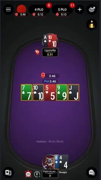 アプリはWindows・iOS・Androidに対応しており、マルチテーブル・ノート機能・ハンド履歴の確認といった実戦向け機能を一通り網羅しています。キャッシュゲームはテキサスホールデム、オマハ、オマハHi-Lo、7カードスタッドと、スタッド系も含めた豊富な種目構成が特徴。