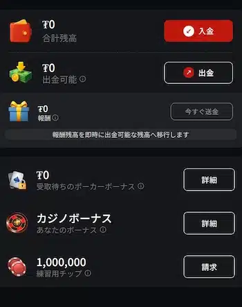 入出金方法にはクレジットカードと仮想通貨を利用可能で、基本的に24時間以内に処理されます。新規向けの最大$2,000マッチをはじめ、総額数千万ドル規模の「OSS」や看板イベント「Venom」など大型トーナメントが充実。さらにキャッシュゲームでは「The Beast」やBlitz専用ランキングで継続的な報酬が得られ、Daily Mystery Bountyやフリーロールなど日常的な特典も豊富です。