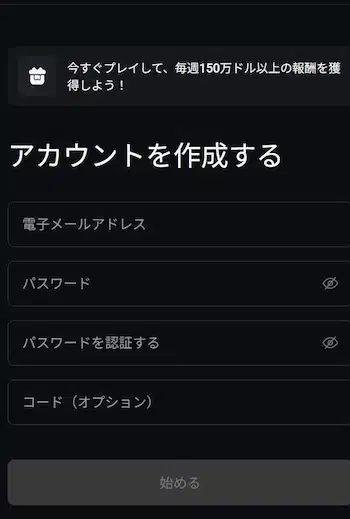 メールアドレスやパスワードなど必要事項を入力してアカウントを作成します。