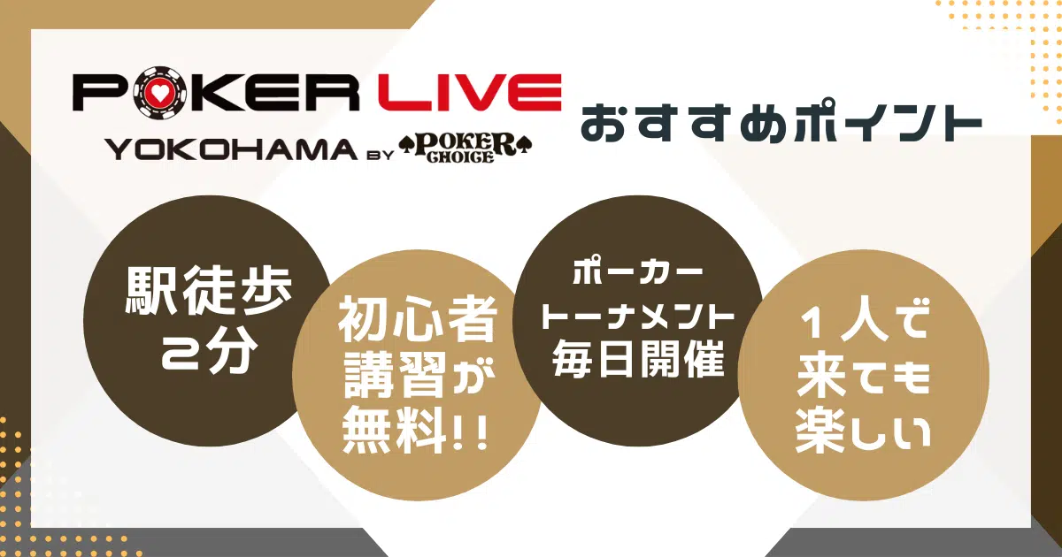 これからポーカーを覚えたい方は、まずはPOKER LIVE YOKOHAMAへ来店してみてはいかがでしょうか。